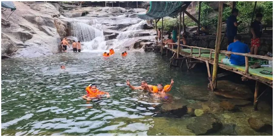 Dưới chân thác là những hồ nước thiên nhiên trong veo, mát lạnh đến tận tim gan. Chỉ cần ngâm mình vài phút là bao nhiêu mỏi mệt như được cuốn trôi theo dòng nước. Đây chính là nơi bạn có thể thực sự “tắm mát tâm hồn” – không phải bằng điều hòa, mà bằng thiên nhiên nguyên sơ đầy dịu dàng.